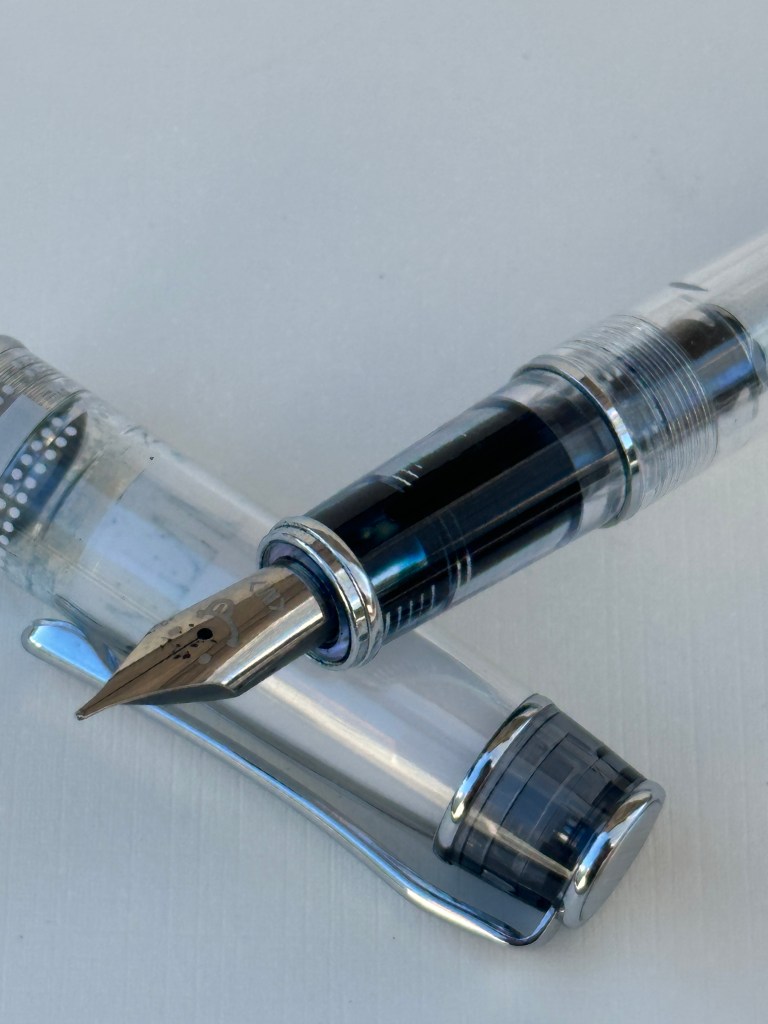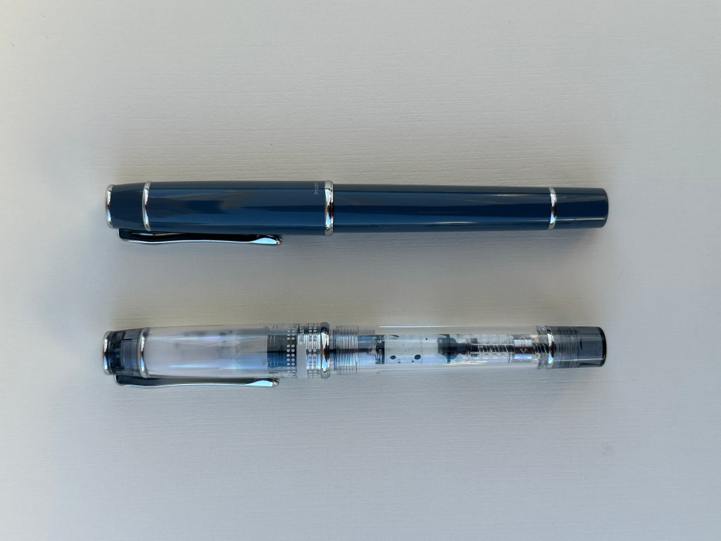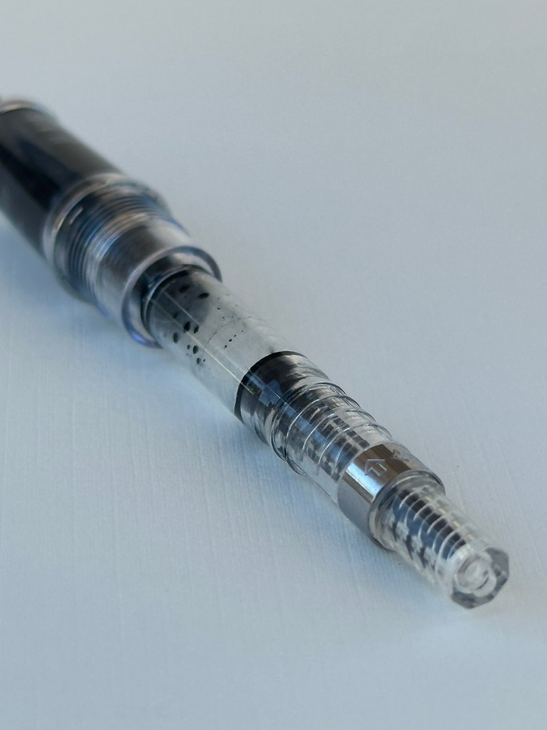 The prera is made of a nice, high quality resin. It’s a small pen, meant to be used posted. Unscrewing the back reveals a cartridge/converter mechanism.