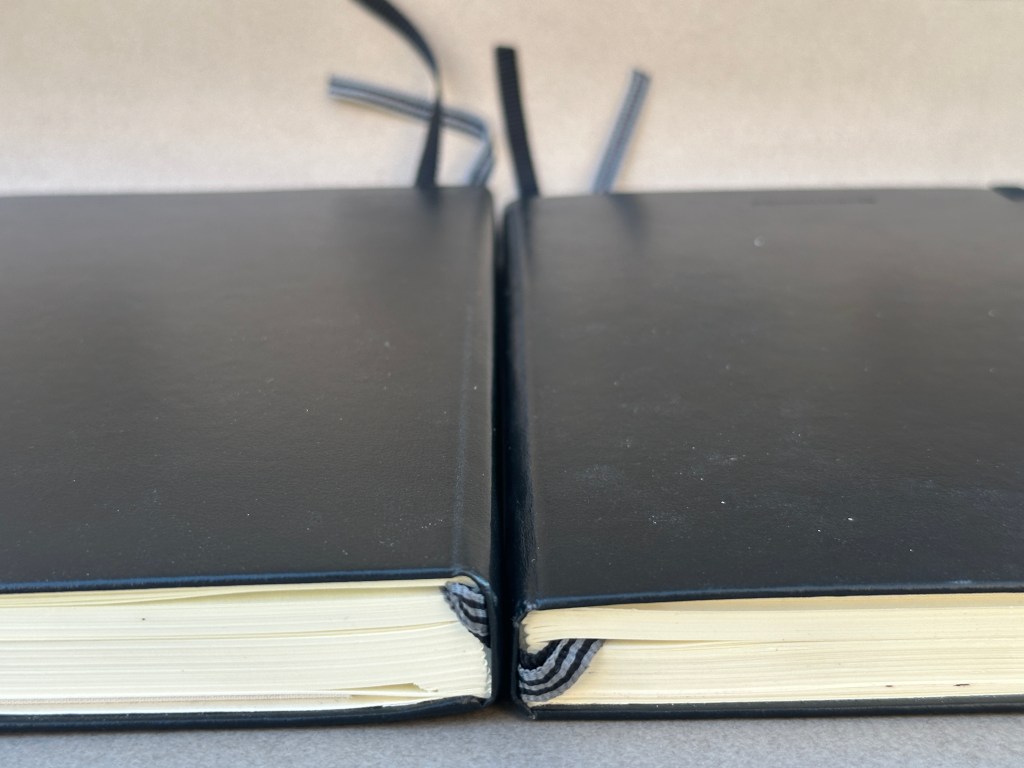 The paper inside both is high quality and cream colored. It handles fountain pen ink well with no bleeding or feathering. However, it does not show ink qualities such as sheen as well as tomoe river or midori md.