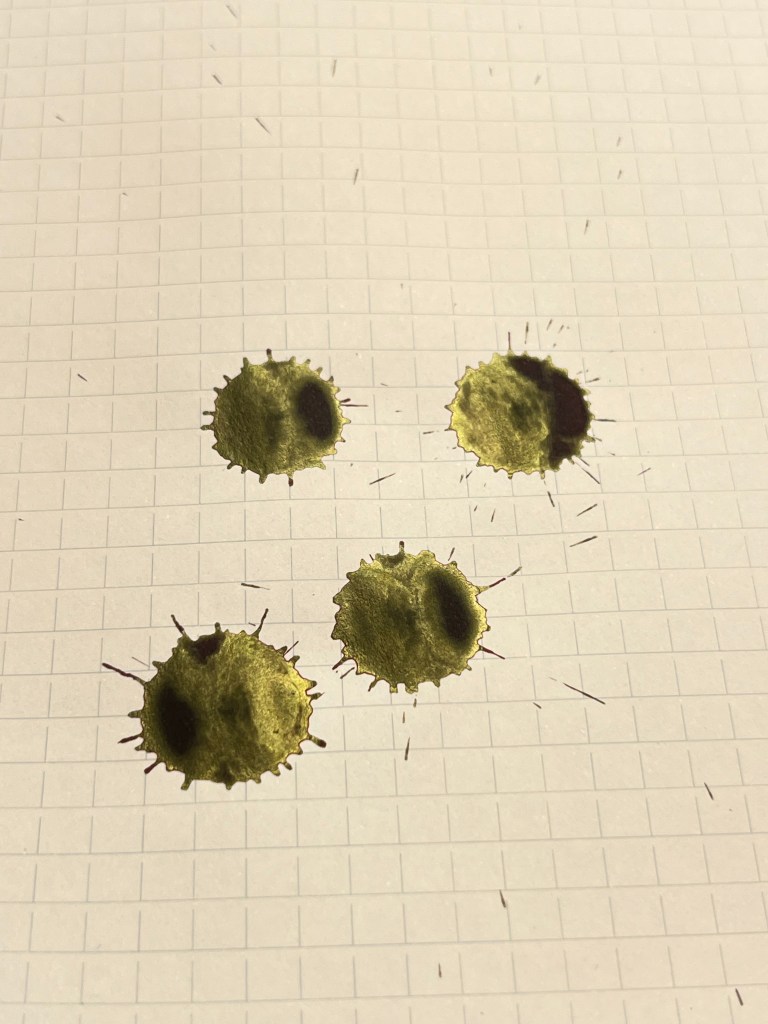 A very sheeny in on the right paper. Here we have Midori MD, and the ink turns completely into a beautiful golden sheen.