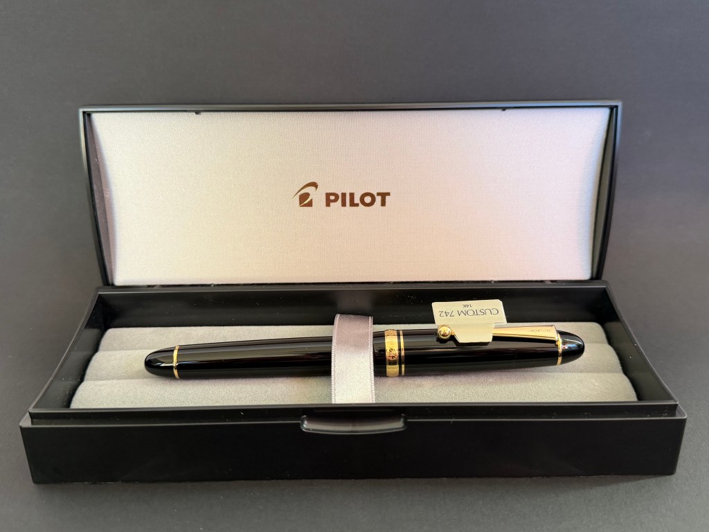 My first gold nib pen and it did not disappoint at all. Pilot is my favorite brand with steel nib pens, so I had to spring for their gold nibs. Within the Custom 74 lineup, there is the 74, 742, and 743 which detonates the body and nib size. I have smaller sized hands so I decided to go with the 742. The box it comes in is the same as every Custom series: a sleek black box with a velvet finish on the inside. After spending forever to decide between the 15 different nib options: I landed on the infamous FA flex nib.